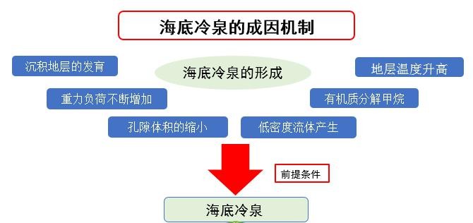 在自然演化過程中,海底沉積物隨著時間的推移,不斷變厚,下層沉積物承受的重力負(fù)荷越來越大,松軟的沉積物仿佛被壓路機(jī)碾壓過,變得越來越夯實。海底的巖層或沉積物不是嚴(yán)絲合縫的,就如同海綿一樣,在重力負(fù)荷的擠壓下,海綿中的縫隙也在不斷變小,這時海綿中的水被擠了出來,這就是沉積物空隙縮小產(chǎn)生的以低密度流體和甲烷為代表的烴類氣體。低密度的流體產(chǎn)生的向上的浮力為氣體的運移開辟了通道。另一方面,地層中氣體的聚集有利于地層的“保暖”,使地層溫度升高,高溫有利于有機(jī)物質(zhì)的分解,從而進(jìn)一步產(chǎn)生烴類氣體。在這種情況下,來自地層中的不同成分、不同溫度的流體和氣體沿著縫隙從海底向海水中噴溢,地層中噴溢出的氣體以甲烷或其他高分子量的烴類氣體為主,這樣就形成了海底冷泉。其實,海底冷泉的溫度與周圍海水溫度相近,約2℃~4℃。海底冷泉常呈線性產(chǎn)出,主要集中在海底斷層和裂隙較發(fā)育地區(qū)。