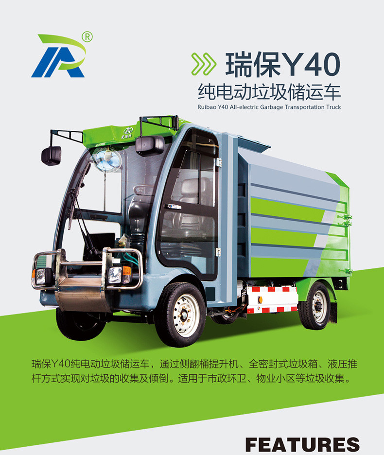 瑞保Y40純電動(dòng)垃圾儲(chǔ)運(yùn)車。采用機(jī)、電、液一體化技術(shù),借助機(jī)構(gòu)、電氣、液壓聯(lián)合自動(dòng)控制系統(tǒng)。通過側(cè)翻桶提升機(jī)實(shí)現(xiàn)對(duì)垃圾的收集、傾倒功能。適用于住宅區(qū)、商業(yè)區(qū)、廣場(chǎng)等。