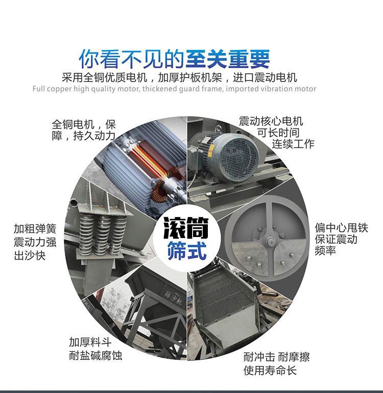 5、工作性能可靠:核心篩分系統(tǒng)采用攪拌機(jī)的攪拌原理,原料在攪拌筒內(nèi)受連續(xù)螺旋葉片翻滾、推擠及物料間相互磨擦作用,作用強(qiáng)烈而且可靠性高。
