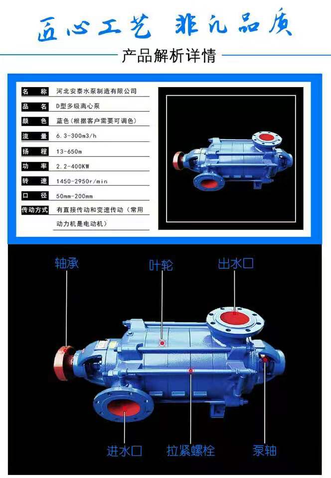 D型崩輸送介質(zhì)溫度不大于80℃,適用于礦山排水和工廠、城市供水等場合。