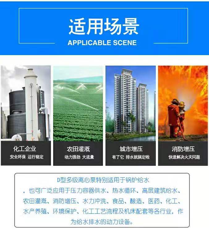 1.1 D型和DG型是臥式多級離心泵,適合于輸送清水(雜質(zhì)含量小于1%,顆粒度小于0.1毫米)及物理化學(xué)性質(zhì)類似于清水的其他物質(zhì)。