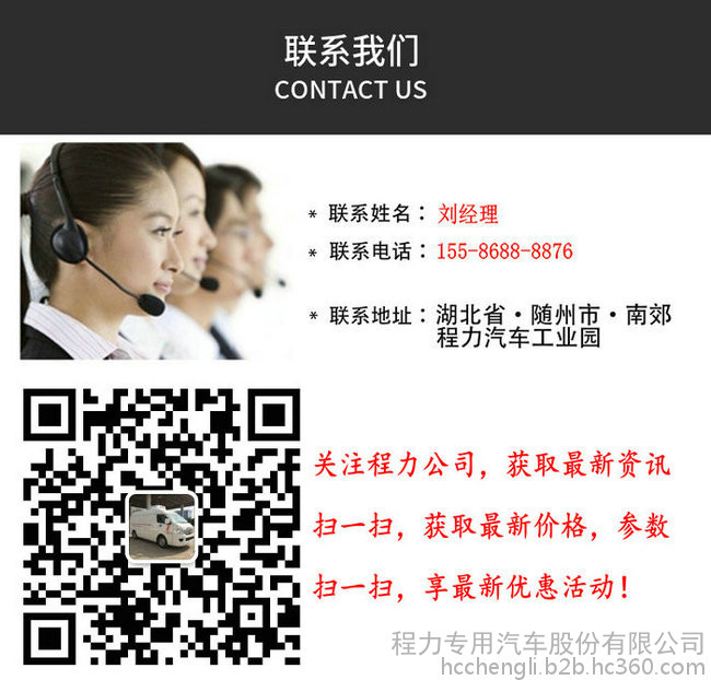 湖北程力集團專注于市政環(huán)衛(wèi)車輛制造多年,作為中國民營企業(yè) 500強,我們專注專心服務好每一位客戶,做好每臺車。 來電即可享受專業(yè)的產(chǎn)品介紹和報價,預約 致電本公司并有意 向車型,我們將邀請您前來考察;并享受專人專車免費接送服務, 我們24小時等候您的咨詢! 本公司提供免費接送服務。