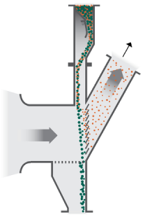 離開砂的表面,上升進(jìn)入布袋吸塵器。較粗顆粒則繼