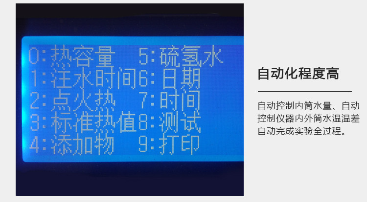 6、自動(dòng)實(shí)現(xiàn)注水、排水、攪拌、點(diǎn)火、數(shù)據(jù)采集和處理、數(shù)據(jù)保存、顯示儀器狀態(tài),自動(dòng)打印測(cè)試結(jié)果。