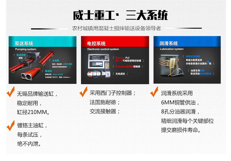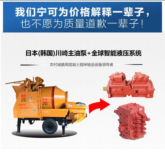 這種一機多能的設備發(fā)展空間極大,很容易得到消費者認可并迅速風靡市場 強制式攪拌拖泵的泵送高度可以達到10-12層樓,基本滿足二級城市和城鎮(zhèn)的施工要求;采用雙臥軸強制式攪拌,攪拌速度更快,作業(yè)效率更高;攪拌更均勻,攪拌出來的混凝土質量更高,能達到商品混凝土的標準,更滿足小商品樓、小高樓的施工要求。威士重工強制式攪拌拖泵目前已經過多家工地試用,性能穩(wěn)定、使用方便、效率高、省時省力,農村、野外施工,一個的限制就是用電不方便,在使用攪拌拖泵進行施工時總是要為其配置一臺發(fā)電機,不僅增加了施工的成本而且還容易出現(xiàn)供電不穩(wěn)的情況,威士重工的柴油動力攪拌拖泵工作時不需要任何電力的接入,并且它性能非常穩(wěn)定,工作效率高,不僅能解決野外施工用電的難題還能助力于野外施工高效完成、縮短工期。再加上,柴油強制式攪拌拖泵更易于保養(yǎng)和維護,基本上不存在故障問題,也不需要為設備的維修而擔心了。 首推農村建設混凝土機械就是攪拌泵送一體機,這種機械于09年開始進入農村市場,隨著近年的發(fā)展壯大,逐漸開始取代傳統(tǒng)的爬上虎設備,成為農村工程建設的主流設備。并且相繼推出了各種類型的小型混凝土輸送泵,如強制攪拌拖泵,車載攪拌拖泵。攪拌拖泵集混凝土攪拌泵送一體,將以往的兩臺設備的功用集于一臺機械,程度上節(jié)約了投資成本,并且提高了施工效率,降低了勞動強度,提高了安全性。小型混凝土輸送泵機身體積小,靈活方便,不占地方,非常適合農村的施工環(huán)境,在一些場地比較狹小的地方也可以進行施工。我們的車載泵轉場比較方便,可以在同一時間段兼顧多個工地的施工,非常的高效便捷。