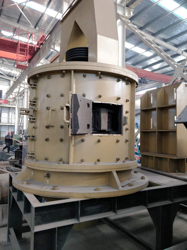 立軸式制砂機簡稱復(fù)合破,又叫復(fù)合破碎機,是在吸取國內(nèi)先進細碎設(shè)備的基礎(chǔ)上,優(yōu)化設(shè)計而成的一種無篩條、可調(diào)式細碎設(shè)備,可廣泛適用于水泥廠的生料、熟料細碎作業(yè),同時也可用于白云石、焦寶石、鉛鋅礦、蛇紋石、高爐渣、磷礦石等中等硬度物料的細碎作業(yè),因此立軸式制砂機特別適用于硬質(zhì)石灰?guī)r、白云巖、花崗巖、玄武巖等人工造砂或高速公路路面石料的加工破碎。立軸式制砂機代替鄂破進行破碎,然后得到的物料送入斗式提升機,然后輸送到磨粉機中進行粉磨,效果也很不錯。