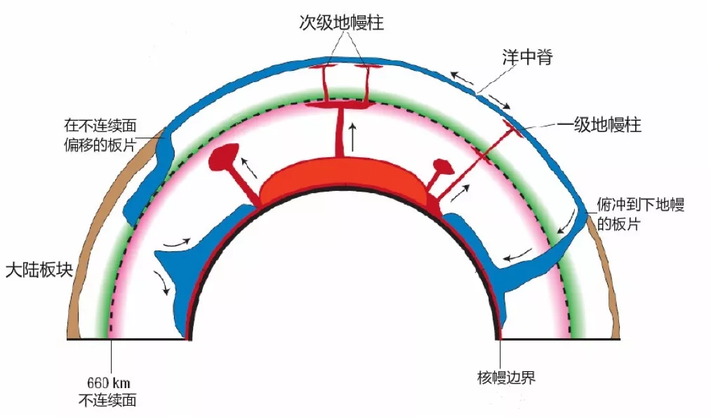 但是,隨著地學(xué)家們對(duì)地幔對(duì)流認(rèn)識(shí)的加深,地幔對(duì)流的模型成為了學(xué)術(shù)界爭(zhēng)論的一個(gè)焦點(diǎn),全地幔對(duì)流還是分層對(duì)流?結(jié)果是地震學(xué)、地球動(dòng)力學(xué)的研究?jī)A向于全地幔對(duì)流模型,而地球化學(xué)研究則支持分層地幔對(duì)流。在地下410km到660km是地幔轉(zhuǎn)換帶,這是上地幔和下地幔的分界面,全地幔對(duì)流和分層對(duì)流兩種模型爭(zhēng)議的關(guān)鍵在于對(duì)流是否能穿透地幔轉(zhuǎn)換帶。