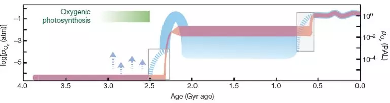 全球性冰期事件被認為與大氣氧化事件有關(guān),大氧化事件就是在古元古代的初期,約24.5億年氧氣含量突然增高。正常來說,古元古代大氣富含甲烷,能夠保持地球表面溫度在凝凍點以上。有人認為,古元古代大氣氧氣含量的上升降低了甲烷的含量并最終導(dǎo)致了冰期的發(fā)育。