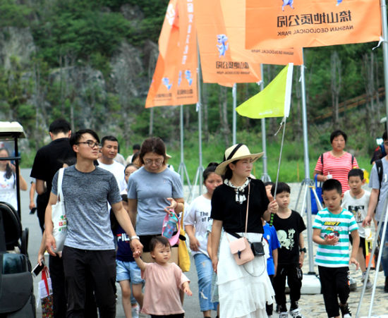 圖為孩子們參觀捺山地質(zhì)博物館。