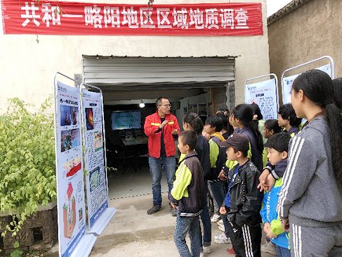 活動以科普講座及展板的形式開展。講解員以“認(rèn)識我們的地球”、“地?zé)崮茉?地球深部的饋贈”和“能源新星——干熱巖”為內(nèi)容向孩子們展示了地球、地?zé)嵋约案蔁釒r的相關(guān)基礎(chǔ)知識,使孩子們了解了干熱巖利用的優(yōu)勢及開發(fā)的難度。講座內(nèi)容生動形象、簡單明了。此外,項目組人員還帶領(lǐng)孩子們參觀了駐劉坪村野外基地,為孩子們展示了項目組在工作中取得的巖石樣品,為孩子們講解了自然界千奇百怪的巖石是怎樣形成的,使基礎(chǔ)地學(xué)知識在孩子們心中滋長。