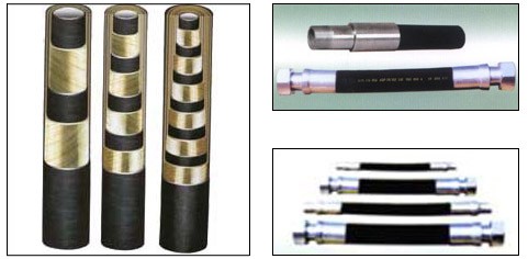 主要由耐液體的內(nèi)膠層、中膠層、2或4或6層鋼絲纏繞增強(qiáng)層、外膠層組成,內(nèi)膠層具有使輸送介質(zhì)承受壓力,保護(hù)鋼絲不受侵蝕的作用,外膠層保護(hù)鋼絲不受損傷,鋼絲(φ0.3--2.0增強(qiáng)鋼絲)層是骨架材料起增強(qiáng)作用。