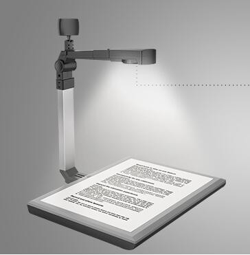 500萬像素主攝像頭,200萬輔攝像頭,A4掃描幅面,標配文稿定位硬底座,高度可以升降。