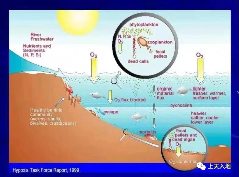 什么是水體缺氧? 當(dāng)海水中氧氣的消耗速率大于氧氣的補充速率時,就引發(fā)水體缺氧。缺氧(hypoxia) 又稱低氧,是指水體中溶解氧含量低于每升2毫克的狀態(tài),僅相當(dāng)于正常海水溶解氧飽和狀態(tài)時的18% 。若水體溶解氧含量為0則稱之為無氧( anoxia) 。近海河口水體溶解氧含量低至缺氧狀態(tài),導(dǎo)致生態(tài)狀況急劇惡化,魚、蝦等很多水生生物都無法正常生活;同時,由于表層沉積物的氧化性環(huán)境遭到破壞,積聚在沉積物中的有毒、有害化學(xué)物質(zhì)可能重新活化,釋放到水體中,形成二次污染。海洋低氧區(qū)或缺氧區(qū)又被稱為海洋“死亡區(qū)”,因為生物難以在低氧或缺氧狀態(tài)下存活;省⑿笄菁S便和生活污水等排泄入海,為海洋藻類浮游植物提供了充足的養(yǎng)料,刺激浮游植物瘋狂生長。浮游植物經(jīng)歷短暫生命后,快速死亡,在水體中降解消耗溶解氧,這與空氣污染因素一起導(dǎo)致海洋中的氧被大量消耗,使海洋中形成低氧區(qū)甚至缺氧區(qū)。缺氧水體中,硫酸鹽還原菌能將硫酸鹽和一些含硫化合物還原為具有毒性的硫化氫進(jìn)一步影響水生生物生長。