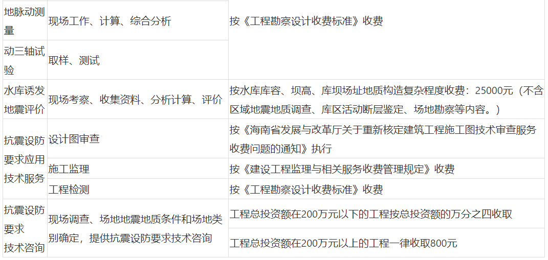 海南省地震安全性評價收費(fèi)標(biāo)準(zhǔn)