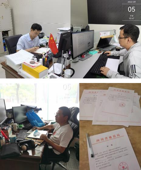 本次地震發(fā)生于成都疫情形勢嚴(yán)峻之時(shí),此前青高所除有4名工作人員在崗值守外,其余同志按要求處于居家辦公狀態(tài)。地震發(fā)生后,剛結(jié)束連續(xù)4天24小時(shí)在崗值守的吳微微副所長迅速響應(yīng),“請小區(qū)未封控的同事全員到崗”,并立即安排在崗值守的同志產(chǎn)出應(yīng)急產(chǎn)品、參與首次會(huì)商。辦公室黃雪影、褚然立刻為居家辦公同志辦理工作證明,確保未在封控區(qū)的同志能順利到達(dá)單位應(yīng)急。震后一小時(shí)內(nèi),青高所22名同志到崗,1名同志在西昌中心站參與應(yīng)急處置工作,另有3名同志奔赴現(xiàn)場一線。