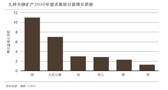 IEA則將預(yù)測(cè)期延長(zhǎng)了10年,2040年清潔能源技術(shù)對(duì)部分礦產(chǎn)的需求量較2020年增幅為:鋰13~42倍,石墨8~25倍,鈷6~21倍,鎳7~19倍,錳3~8倍,稀土3~7倍,銅2~3倍。
