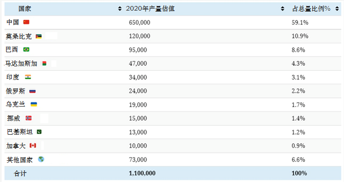 目前,幾乎所有石墨加工都在中國(guó),因?yàn)槠涫Y源豐富、環(huán)境要求和生產(chǎn)成本不高。去年,幾乎60%的礦山石墨產(chǎn)量來自中國(guó),使得石墨供應(yīng)鏈每個(gè)環(huán)節(jié)都受其控制。