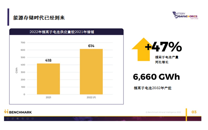 BMI估計(jì),2022年鋰離子電池需求增速創(chuàng)歷史新高,較上年增幅近50%。
