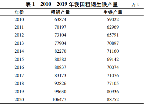 鋼鐵工業(yè)是重要的基礎(chǔ)工業(yè),是發(fā)展國民經(jīng)濟與國防建設(shè)的物質(zhì)基礎(chǔ)。它的原料、燃料及輔助材料資源狀況,影響著鋼鐵工業(yè)規(guī)模、產(chǎn)品質(zhì)量、經(jīng)濟效益和布局方向。1996 年,中國粗鋼產(chǎn)量突破 1 億 t,躍居世界第一。表 1 給出了從 2010 年到 2020 年我國粗鋼產(chǎn)量,可以看出 2015 年曾發(fā)生過一次產(chǎn)量的下降,當年中國粗鋼產(chǎn)量下降至 8. 0 億 t,比上年減少 1900萬 t,同比下降 2. 33%。2016 年鋼鐵供給側(cè)改革拉開大幕之后,行業(yè)逐漸回暖,鋼鐵產(chǎn)量再次逐年攀升。2015 年至今,中國粗鋼產(chǎn)量已累計增長約 25%。鋼鐵工業(yè)是資源密集、能耗密集、排放密集型產(chǎn)業(yè)。鋼鐵企業(yè)在生產(chǎn)過程中產(chǎn)生的固體廢棄物主要有鋼渣、高爐渣( 包括水渣、干渣) 、含鐵塵泥( 包括燒結(jié)、煉鐵、煉鋼及軋鋼等系統(tǒng)收集的除塵灰泥) 、脫硫灰、電廠粉煤灰、廢耐火材料和工業(yè)垃圾等。平均每噸鋼產(chǎn)生固廢 500~800 kg。在過去的 20 年中,隨著我國粗鋼產(chǎn)量的增加,鋼鐵工業(yè)固廢的產(chǎn)量也大幅增加。