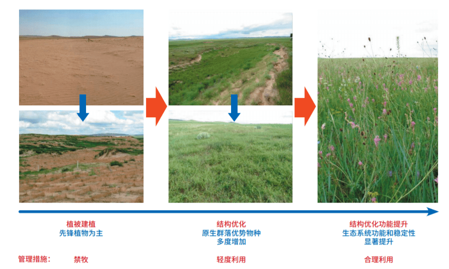 在中國干旱半干旱區(qū),草業(yè)防沙化治沙技術(shù)甚至比林業(yè)防沙治沙技術(shù)還要重要,因為這些地區(qū)的潛在地帶性植被就是草原,草原種在該地區(qū)占有數(shù)量上和分布面積上的優(yōu)勢。已有研究表明,在半干旱的草原地區(qū)以及中國四大沙地,草的作用大于灌木、灌木大于森林。因此,合理的推廣應(yīng)用草業(yè)技術(shù)科學(xué),在脆弱生態(tài)系統(tǒng)的綜合整治中意義更加重大,特別是在治沙方面。