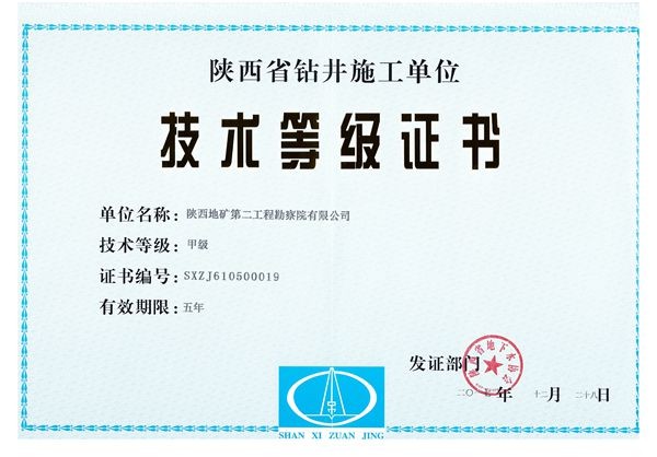 經(jīng)過兩個(gè)月努力,陜西地礦第二工程勘察院有限公司順利通過陜西省地下水協(xié)會組織的鉆井資質(zhì)復(fù)審換證相關(guān)審核,成功取得鉆井甲級資質(zhì)證書,資質(zhì)證書換發(fā)全部完成。