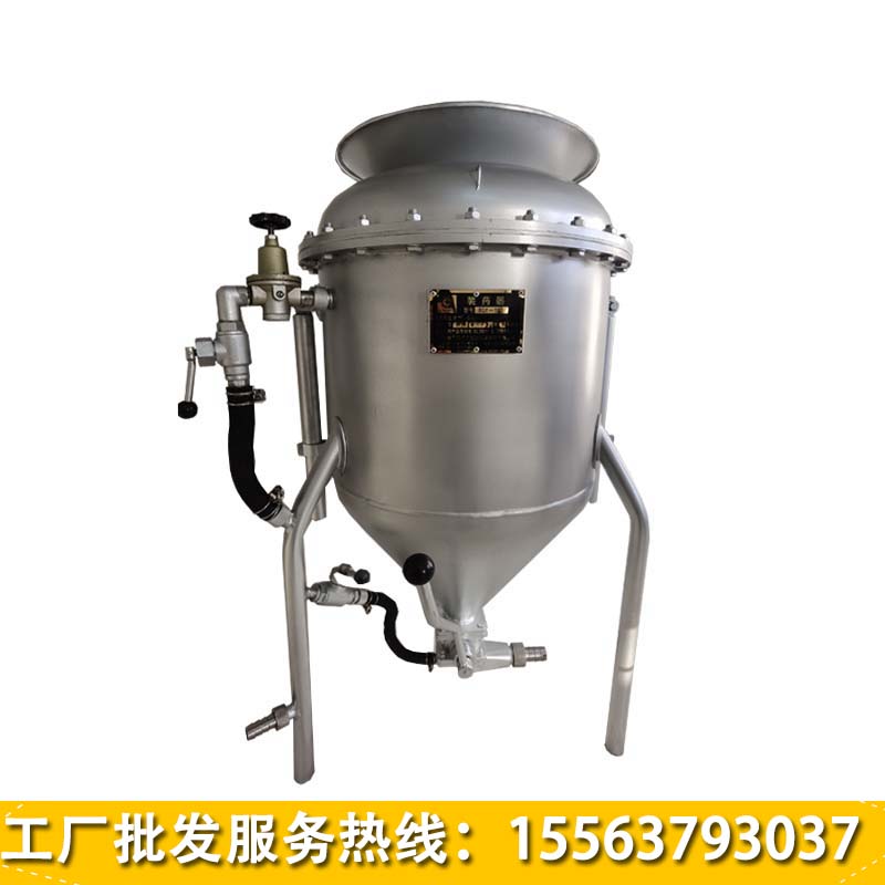 裝藥器,裝滿炸藥的罐一側通壓縮空氣,另一側通一管進入炮孔(眼)中,調整壓氣閥,炸藥經(jīng)輸藥管進入炮孔(眼)中的器具。多用于井下深孔爆破,每小時可裝500千克炸藥,大大降低勞動強度,提高裝藥效率。