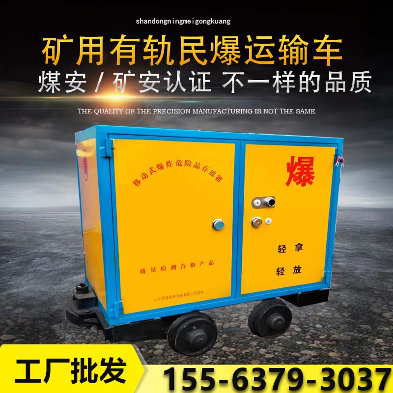 關(guān)于什么是礦車炸藥箱,下面為大家做一個(gè)介紹 礦車式炸藥箱,其實(shí)可以有很多叫發(fā)和名稱:移動(dòng)火工品管理箱 礦用井下臨時(shí)軌道車 井下無(wú)軌炸藥運(yùn)輸車 ,礦井軌道運(yùn)輸車,雷管軌道車,移動(dòng)式爆炸危險(xiǎn)品存放箱。軌道井下用炸藥箱,火工品專用車, 礦車車載式防爆箱,井下爆破物品軌道車等多種叫法,大概的意思都是:在煤礦或者是金礦,銅礦等各個(gè)礦下,有軌道的地方,使用的運(yùn)送危險(xiǎn)品的箱子和車一體式產(chǎn)品,因?yàn)榈V井下的軌距多樣,所以礦車也可以分為:600軌距,762軌距,900軌距,等多種軌距,用來(lái)適用于大多數(shù)的軌道。 礦車炸藥箱的組成部分: 礦車炸藥箱,整體可以分成2部分,一個(gè)是材料車,一個(gè)是炸藥箱,合體而成,稱之為礦車炸藥箱,炸藥箱部分是:6-8個(gè)厚的防爆鋼板+木板+防靜電的氈子 材料車則為專業(yè)的材料車構(gòu)成,兩者焊接為一個(gè)整體,使得井下的爆炸危險(xiǎn)品的運(yùn)送更為安全可靠。
