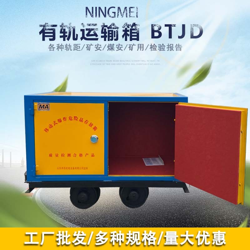 井下運輸炸藥車,是一款針對煤礦,金屬礦等各類礦山軌道井下的專用運輸車,可用來臨時存放或者運輸炸藥,雷管等物品的車輛,跟普通礦車相比,除了材質(zhì)上要求嚴格,需要符合存放各類爆破器材的條件,主要是產(chǎn)品的證件齊全,使用起來安全放心。存放炸藥必須要:防靜電,防爆,防火,阻燃,耐高溫等諸多條件,要求證書《公安檢測認證》《防靜電檢測報告》必須要有。這樣一款產(chǎn)品經(jīng)過多年經(jīng)驗累積,結(jié)合安全要求應(yīng)運而生這就是 BTJD-001型防爆炸藥箱,這種炸藥箱帶有《公安檢測認證》《防靜電檢測報告》雙重報告防靜電,防爆,防火,阻燃,耐高溫,是目前存放炸藥的理想器材,在這基礎(chǔ)上還有,防爆儲存柜,臨時炸藥庫房等等產(chǎn)品,完全符合要求。