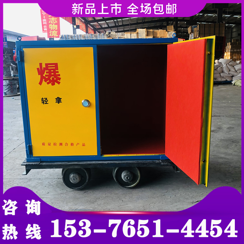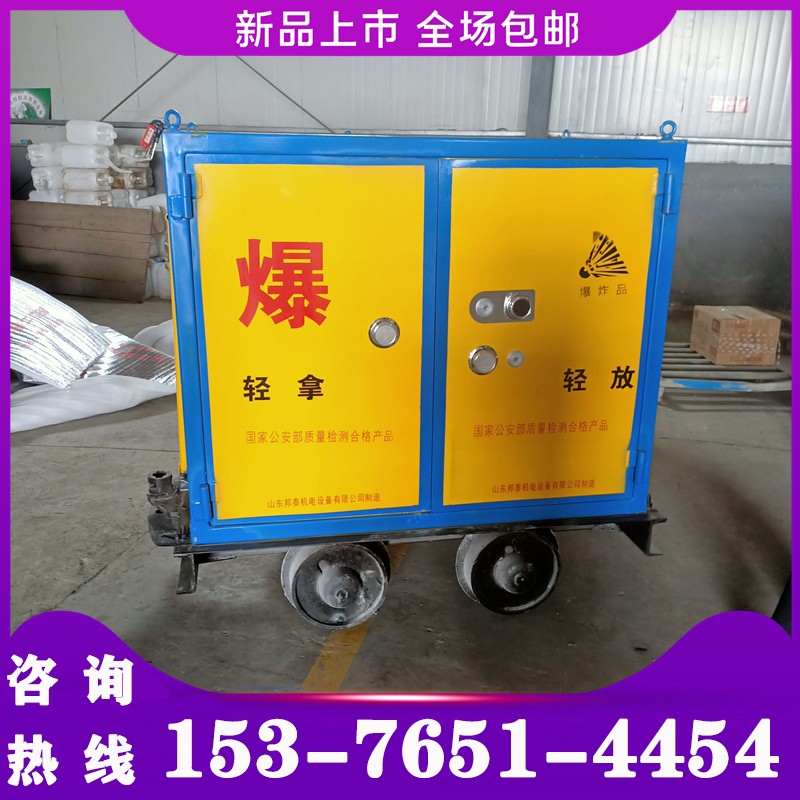 一體式炸藥車,也叫移動(dòng)式火工品運(yùn)輸車、井下有軌炸藥車、爆炸物品運(yùn)輸車、民爆器材儲運(yùn)柜、移動(dòng)式防爆炸危險(xiǎn)品存放箱、牽引式雷管箱等,為山東邦泰集團(tuán)專為各類礦山井下生產(chǎn)的一款專門放置導(dǎo)爆管、電雷管、炸藥、爆破火工品等爆破器材的儲運(yùn)柜。全稱為:“礦用軌道炸藥運(yùn)輸車”。