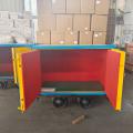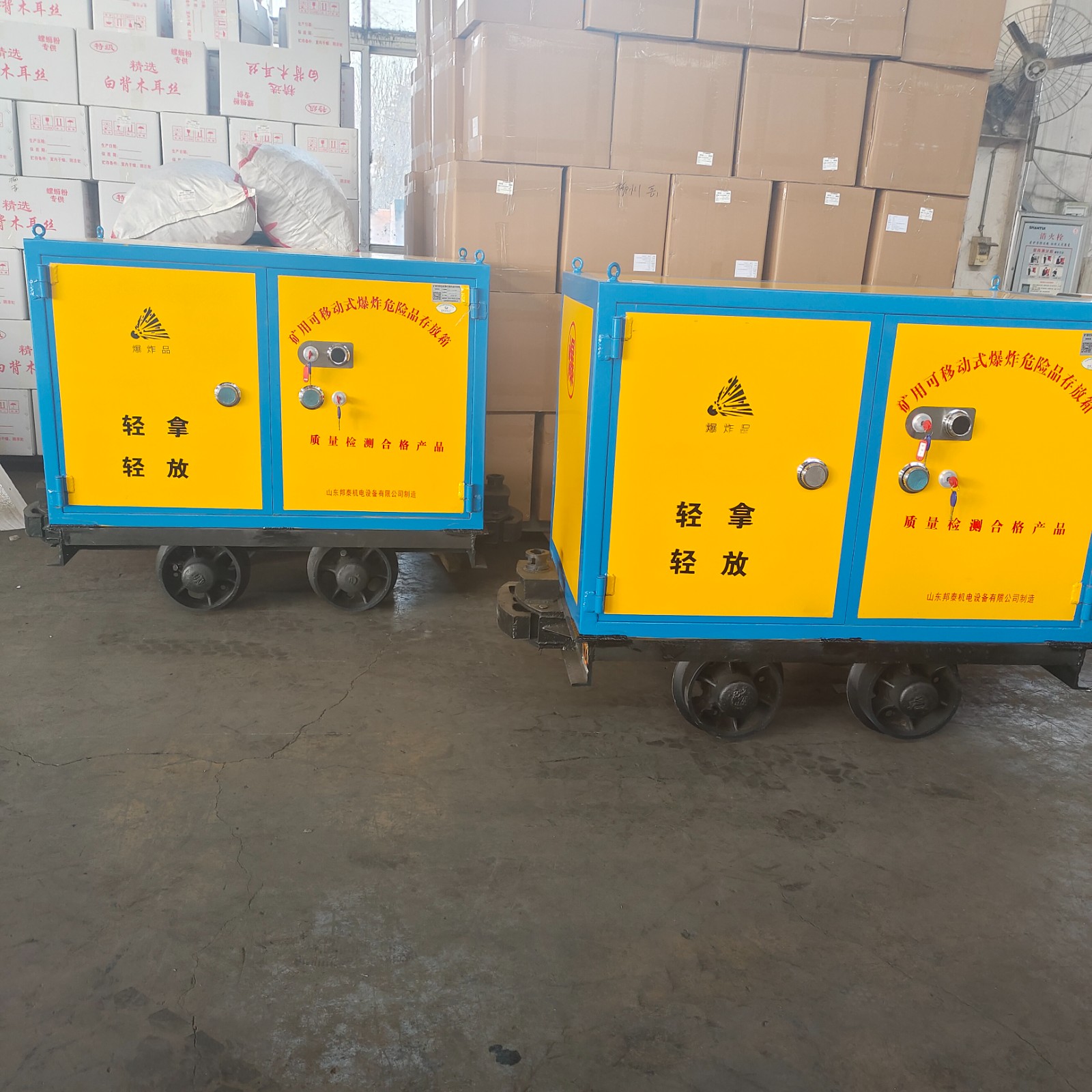 那么有軌火工品運輸車和普通的運輸物料礦車有什么區(qū)別呢?除了同樣帶有礦車行走輪之外,火工品運輸車由于存放物品性質(zhì)的原因,對存放載體是著比較嚴格的要求的,整體是由鋼板材質(zhì)焊制成型,箱體結(jié)實穩(wěn)定,鋼板厚度不低于6mm,外觀簡潔,噴涂黃色防銹漆,邊緣處藍色相間,顏色鮮明,在光線較弱的環(huán)境下也比較顯眼。箱體內(nèi)部結(jié)構(gòu)是一層支撐木板和防靜電處理的氈墊,可適當防護火工物品避免因震動引起的磕碰損壞。