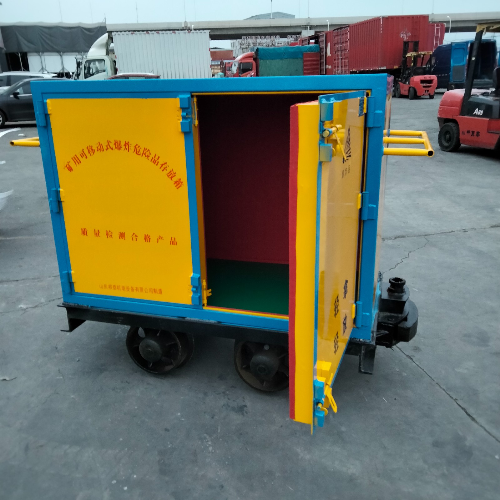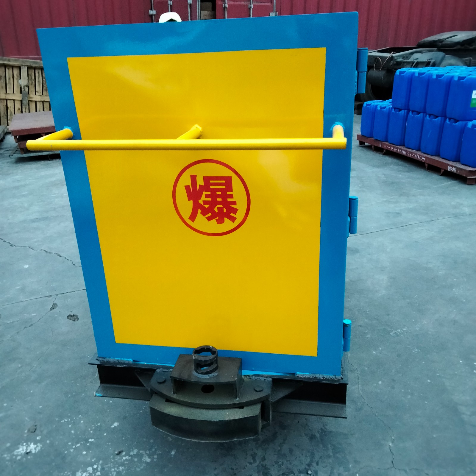 下面介紹一款軌道式危險品運(yùn)輸箱,是利用井下軌道把施工所用到的爆破物品運(yùn)輸?shù)叫枰┕さ牡攸c,這款運(yùn)輸箱分為兩個組成部分,上部分為存放柜,下部分為承載存放柜的礦車,存放柜門板厚度不低于6mm,經(jīng)過特殊工藝處理增加鋼板的硬度和韌性;內(nèi)部為一層10mm厚的絕緣木板,最里層是抗震防靜電氈墊。下部分礦車可根據(jù)礦用軌道,定做600/762/900mm的軌距,利用礦井的牽引裝置,多輛車之間使用插銷和三環(huán)鏈連接,運(yùn)輸車為定制產(chǎn)品,需要根據(jù)存放量,井下的運(yùn)輸環(huán)境等多方面因素制定適合尺寸,且資質(zhì)齊全,可出具專業(yè)檢測機(jī)構(gòu)的報告。