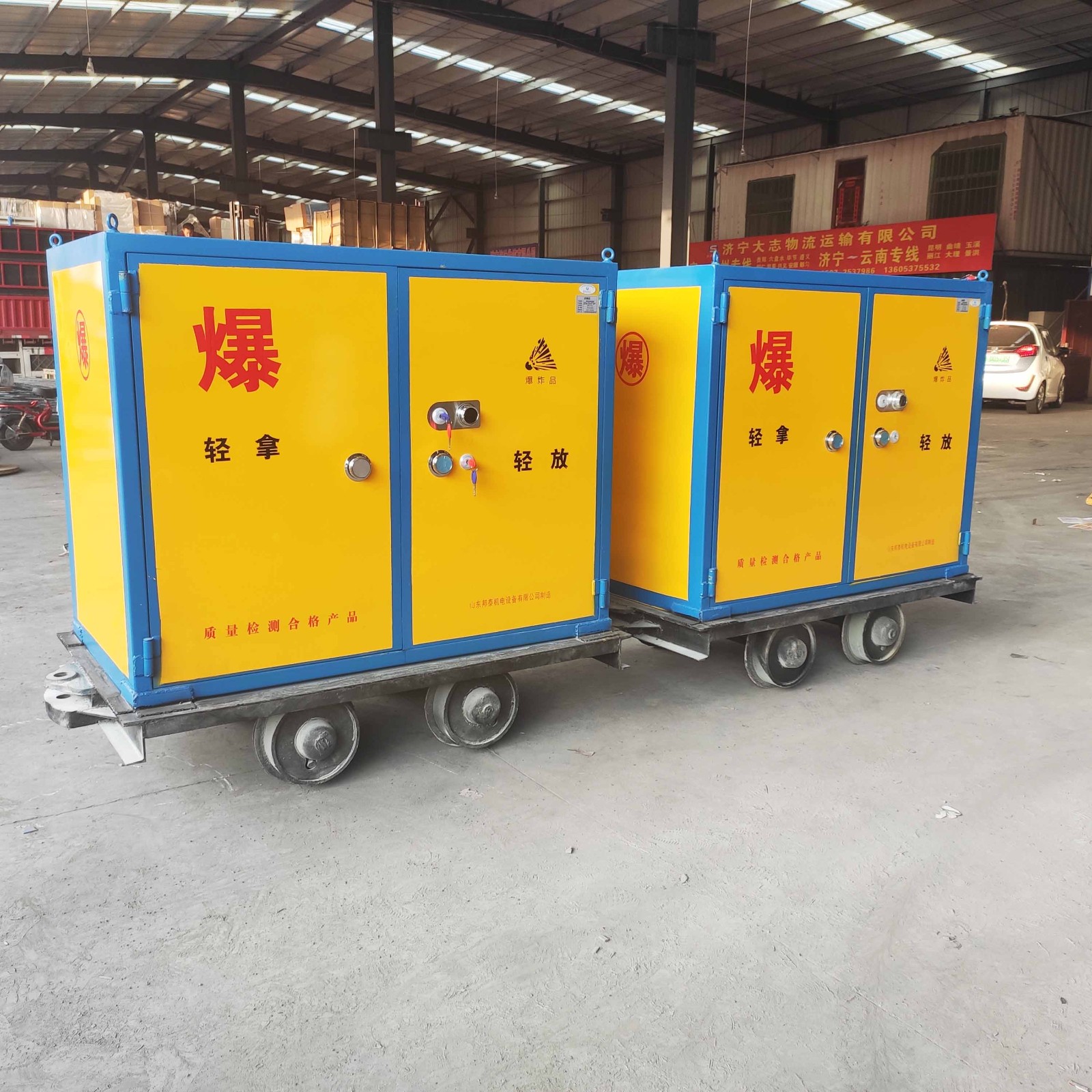 礦山生產(chǎn)必然離不開危險品運輸環(huán)節(jié),使用專業(yè)的運輸工具至關(guān)重要。首先材質(zhì)上要適合存放常用的雷管,炸藥等民爆危險物品,密封性,防靜電功能以及防護等級均需符合相關(guān)要求。其次,需取得專業(yè)檢測機構(gòu)的認(rèn)證,以下幾項認(rèn)證缺一不可1.移動式危險品存放箱的《公安檢測報告》2.《防爆檢測報告》3.《防靜電檢測報告》4.《礦安證》(非煤礦山適用)或者《煤安證》(煤礦適用)5.出廠檢驗的《合格證》