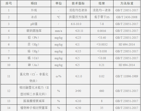 (2)色清亮——原液pH值為7.6,色澤清亮無異味,粘度適中,融雪后不會造成路面染色,不影響路面自清潔能力;