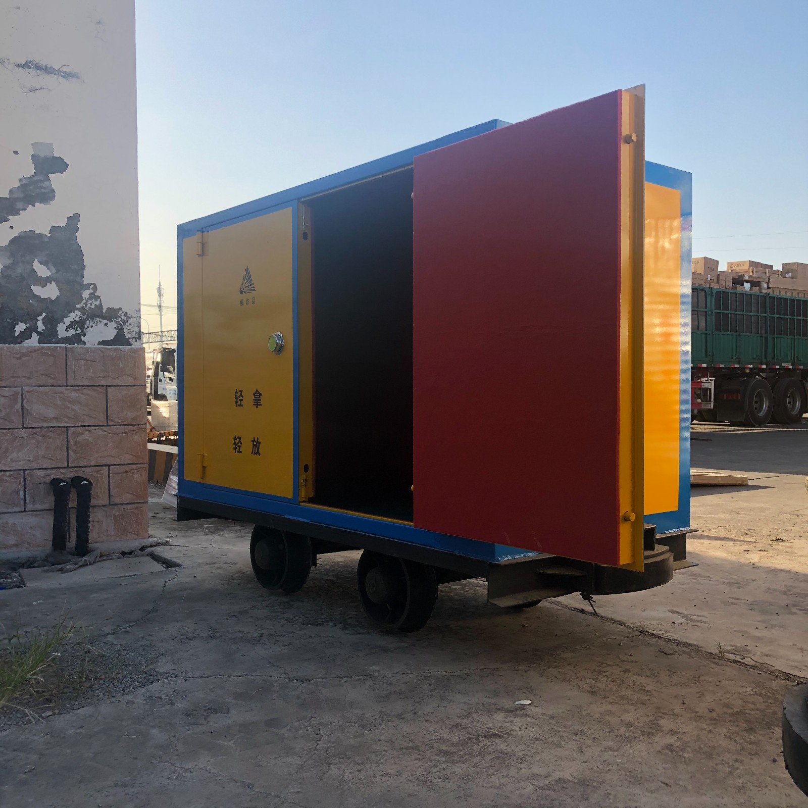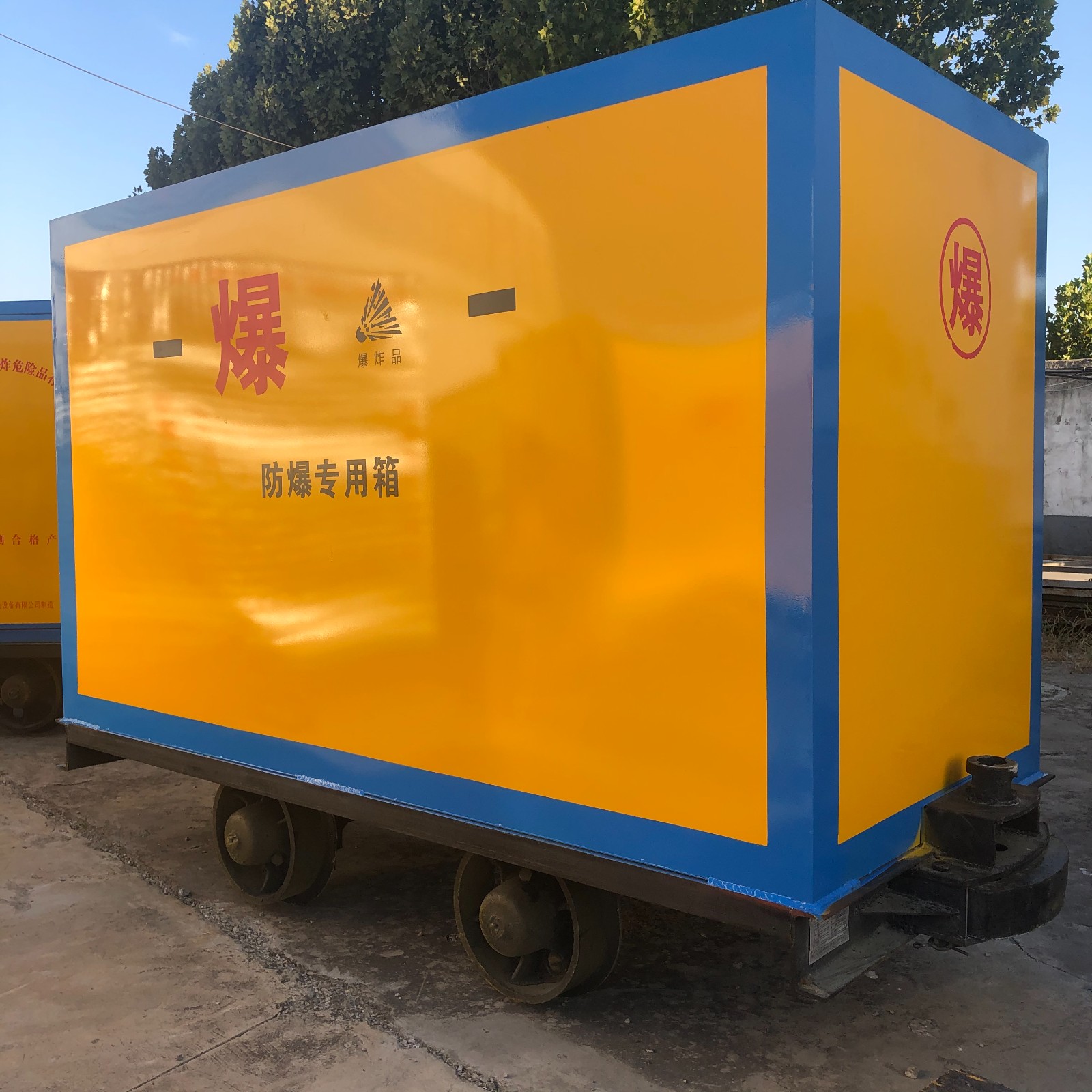 礦山井下軌道運(yùn)輸炸藥箱由軌道車和儲存箱體組成。軌道車是該設(shè)備的核心部件具有強(qiáng)度高、不易損壞等特點(diǎn),可根據(jù)井下軌道情況來選擇600mm、762mm、900mm的軌距,炸藥箱則是裝載炸藥、雷管貨其他爆破物品的容器,其密閉性要求高,以避免炸藥在運(yùn)輸過程中發(fā)生意外,它是由鋼板材質(zhì)焊接而成的,鋼板厚度一般不低于6mm,如果定制的尺寸過大,建議加厚鋼板厚度保持箱體的穩(wěn)固,不易被外力損壞。在運(yùn)輸作業(yè)時,軌道車的速度不能過快,全程控制低速行駛,以便運(yùn)輸人員以及炸藥箱時能夠更加安全可靠。