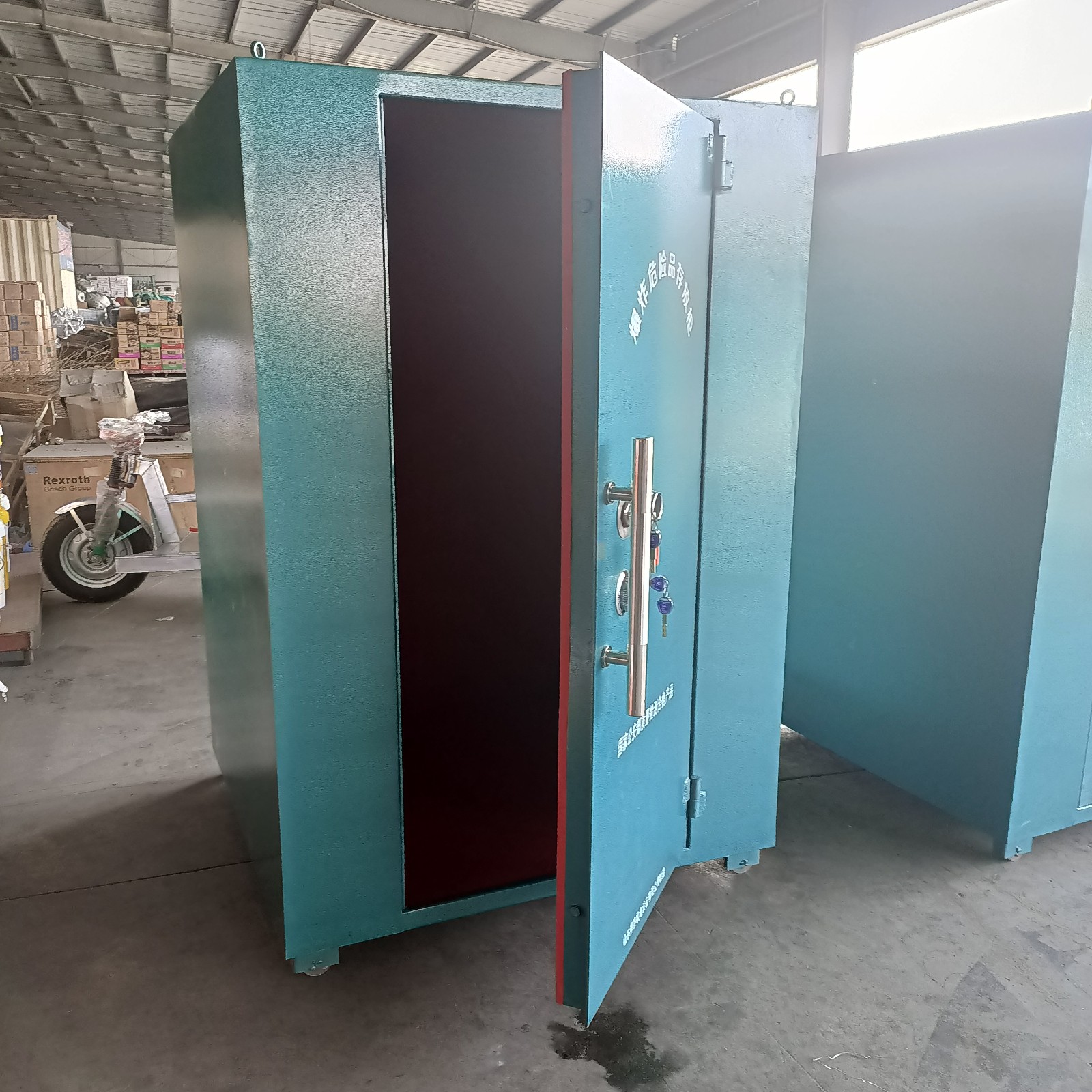 一般重要的存放量達(dá)到1噸以上需要用到庫(kù)房,庫(kù)房存放量從1噸到50噸不等,材質(zhì)經(jīng)過(guò)嚴(yán)格實(shí)驗(yàn)檢測(cè),整體由8mm左右防爆鋼板焊接而成,內(nèi)部為10mm厚絕緣模板,內(nèi)層鋪設(shè)具有防靜電效果的氈墊,鎖具為雙鎖聯(lián)動(dòng),要是分開(kāi)兩人保管,開(kāi)鎖時(shí)需兩人同時(shí)在場(chǎng),設(shè)有一個(gè)機(jī)械密碼鎖,為存放安全提供更高保障。四角焊裝吊環(huán),便于裝卸運(yùn)輸。