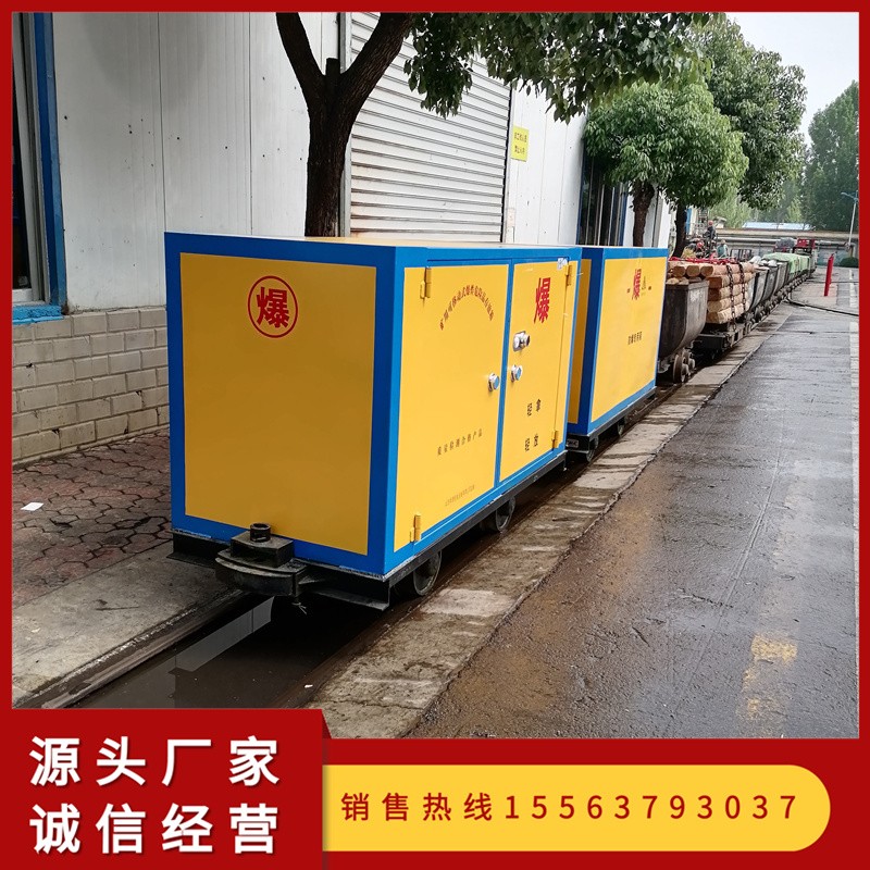 爆破工程中井下運(yùn)輸量的是炸藥,因此也可叫做炸藥軌道車,運(yùn)輸雷管的車輛比炸藥小很多,為了外形美觀,可以寬高和炸藥車一樣,長度可以相應(yīng)減小,并且要謹(jǐn)記炸藥和雷管不能同車運(yùn)輸,為了安全兩者運(yùn)輸車輛最少相聚5米。每個軌距用不同的礦車輪對,最常用的是600軌距,900軌距和762軌距次之。煤礦600軌距居多,金屬礦山762軌距較多。如果礦山是斜井,有軌炸藥運(yùn)輸車需要配置大碰頭,防碰防撞更安全,如果是豎井,沒有斜坡,那么用小碰頭材料車就可以。