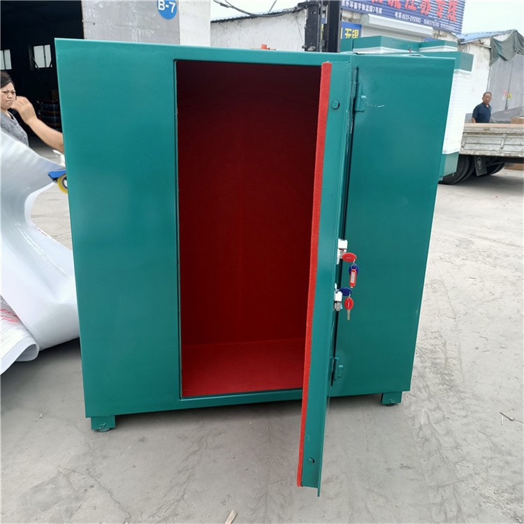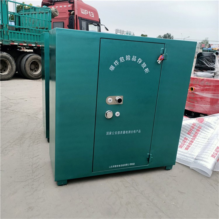 炸藥存放柜是炸藥庫(kù)房到爆破工程點(diǎn)所需要的運(yùn)輸工具,也可做為暫時(shí)危險(xiǎn)品存放柜存放火工品。雷管和炸藥不能混放。炸藥柜是有四層組成:7mm鋼板+1mm木板+1mm鋼板+防火阻燃?xì),三位一體密碼鎖,兩把鎖,雙人保管鑰匙,保障危險(xiǎn)品的安全,符合國(guó)家標(biāo)準(zhǔn)。
