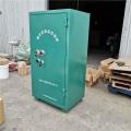 存放柜采用鋼板材料制作,外形美觀、表面經(jīng)過靜電噴涂等工藝處理,具有耐腐蝕、防爆、防盜的特點,柜門鎖具是密碼鎖和機械鎖兼具的形式,確保存儲的火工品能夠得到最好的保護。由10mm厚的木板和防震阻燃氈墊鋪設(shè)于柜體內(nèi)部,使得火工品不易受靜電環(huán)境產(chǎn)生危險,底部四角裝有金屬輪,可在地面上進行移動,非常方便。