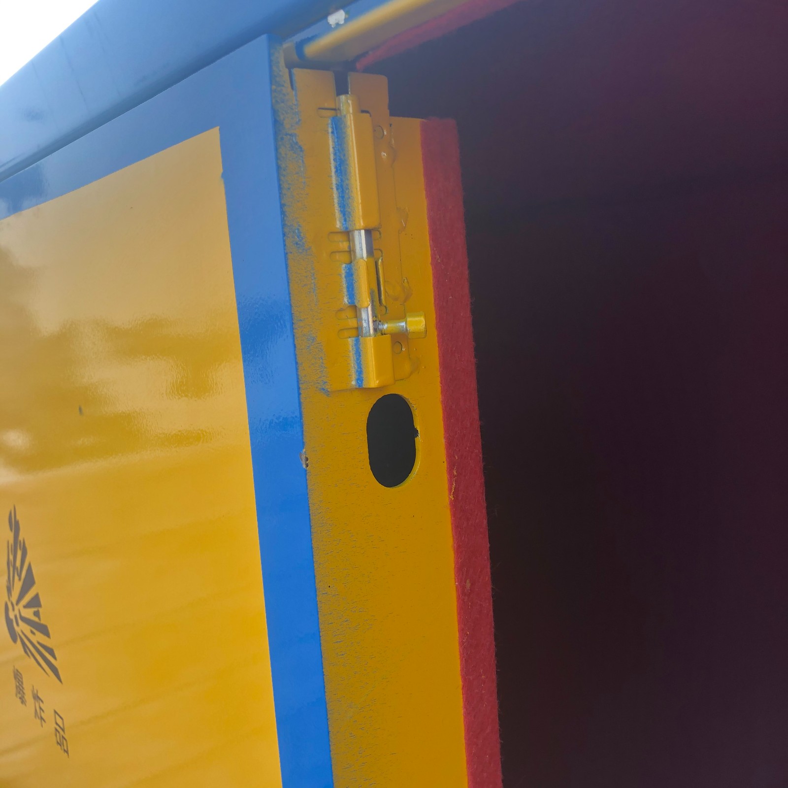 運輸箱的材質(zhì)應(yīng)當(dāng)具備足夠的耐腐蝕性、防火性和耐磨性,以確保其能夠在惡劣的井下環(huán)境下長期使用,箱體為金屬鋼板材質(zhì),板材厚度不低于6mm,以符合防爆,抗壓不易變形的要求,內(nèi)部鋪設(shè)有絕緣襯板和防靜電阻燃?xì)謮|,免除產(chǎn)生靜電火花帶來的危害,底盤部分可根據(jù)不同礦山軌距,來選擇600mm,762mm,900mm幾種軌距,存放量,鎖具等其他細(xì)節(jié)都可按使用需求定制。