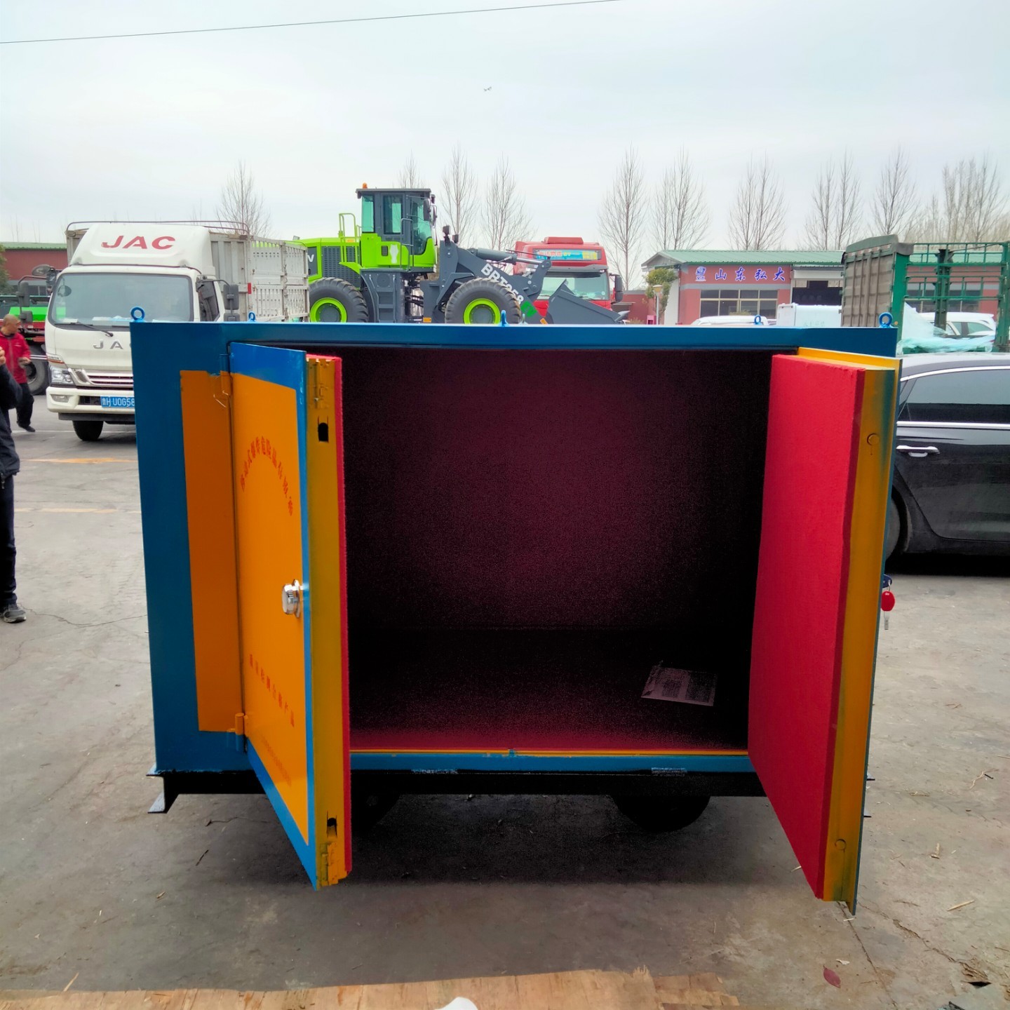 礦山行業(yè)是我國的重要產(chǎn)業(yè)之一,但同時(shí)也存在諸多危險(xiǎn)和安全隱患。其中,炸藥是必需品,但也是礦山環(huán)境下一種非常危險(xiǎn)的物品。為了保證炸藥的安全運(yùn)輸,在向井下運(yùn)輸時(shí),需要使用到專用的運(yùn)輸車輛,它是礦車底盤和存放柜組合的一種形式。