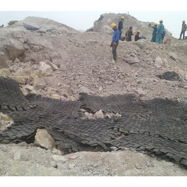 隧道口炮網(wǎng)以舊車胎為材料,經(jīng)過精細處理和編織,制成整張網(wǎng)狀形態(tài),可以多張連接在一起,懸掛在隧道洞口。使用這種材質(zhì)編織而成的炮網(wǎng)具有抗拉強度高、耐腐蝕和損耗少的特點,可以有效地承受施工中造成的沖擊和壓力。此外,炮網(wǎng)還具有優(yōu)良的柔韌性和可變形性,能夠根據(jù)需要鋪設成所需要的洞口形狀和大小,為爆破施工中防護周邊人物和建筑安全提供了保障,并將廢舊車胎二次利用起來,解決了廢棄物處理的困擾。