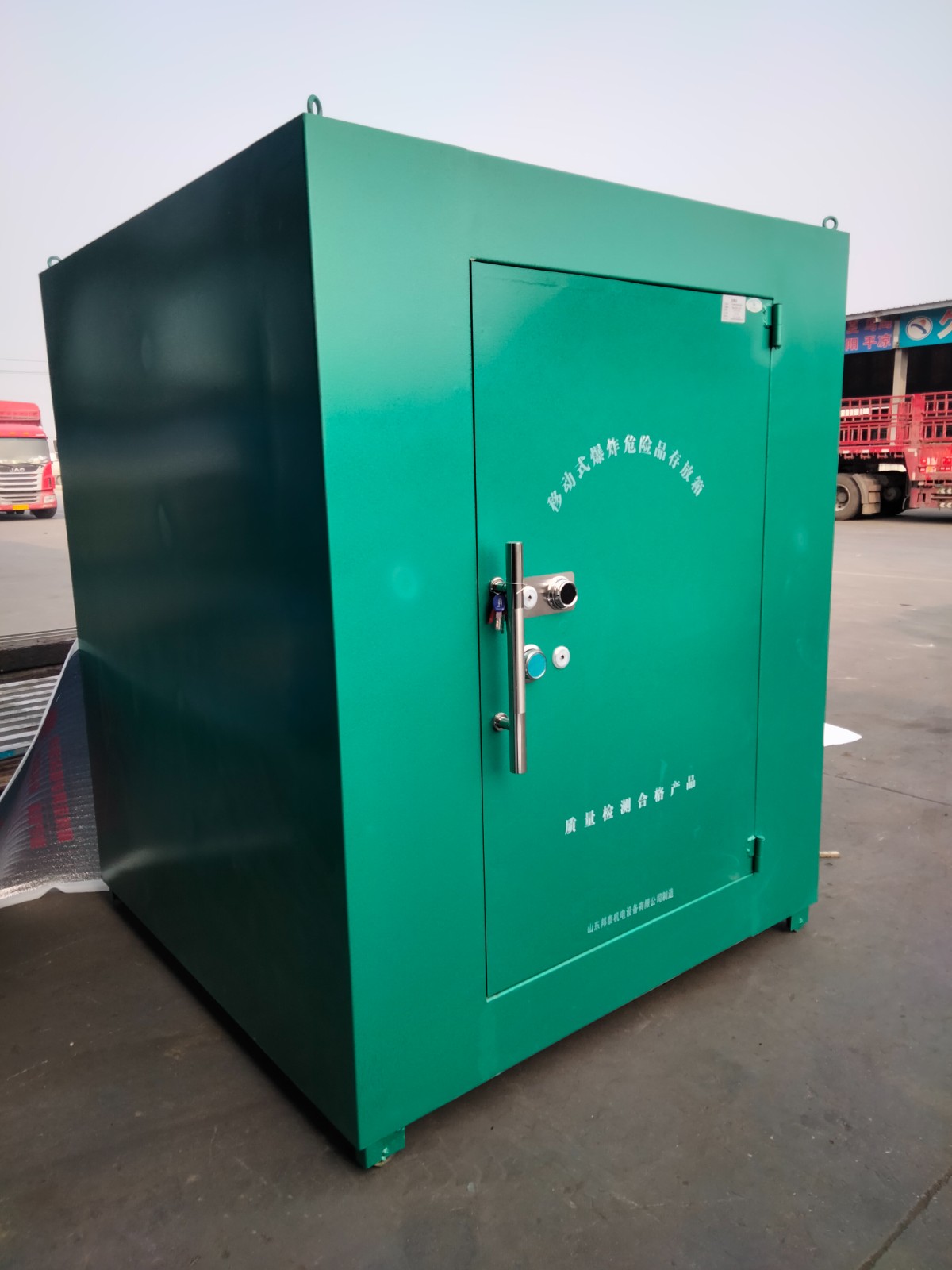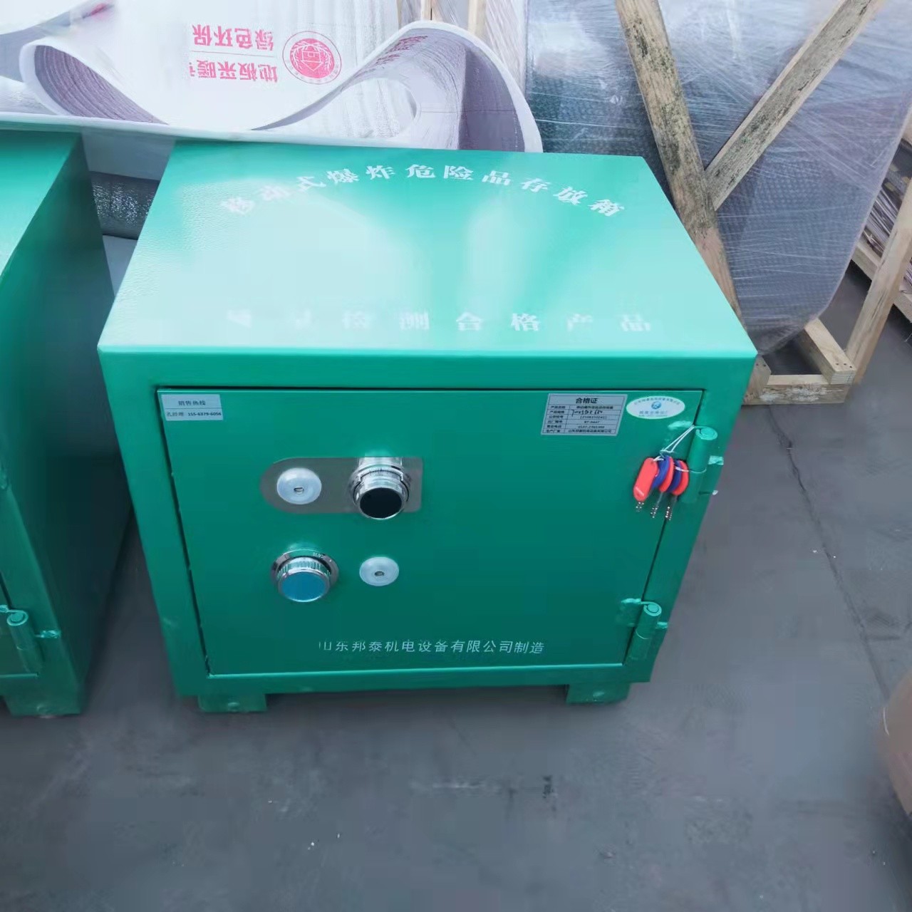 存放柜體是鋼板結(jié)構(gòu)焊制成型,內(nèi)部做防靜電絕緣處理工藝,安裝有一層絕緣木板和抗震防靜電氈墊,為爆破器材多一層防護(hù)!鋼板厚度要求不得低于6mm厚,經(jīng)過專業(yè)檢測(cè)機(jī)構(gòu)檢驗(yàn)防爆性能并取得防爆證書和防靜電證書。