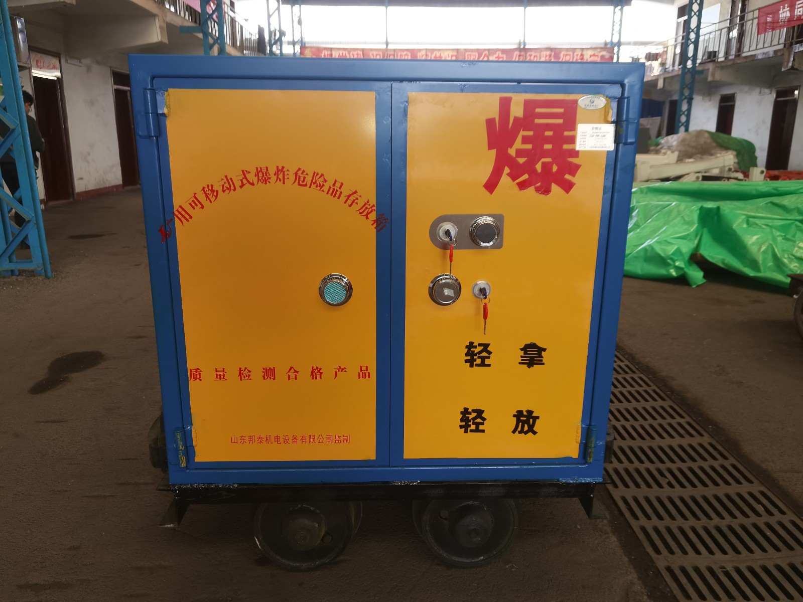 礦井下用的運輸車是要有證書齊全的,而且還要正品的國標產(chǎn)品,這樣才可以符合礦井下的使用標準,我們的箱體,鋼板是6-8mm厚的防爆鋼板,加上10mm厚的防靜電木板,還要1mm的防火阻燃氈,是正品的國標產(chǎn)品,而且我們的證書齊全,有檢測證書還有防靜電證書,合格證書,都是可以在安標網(wǎng)上查到的,所以購買一定要認準國標產(chǎn)品,否則不僅耽誤工期還會檢查不合格爆破用可移動式爆炸危險品存放箱