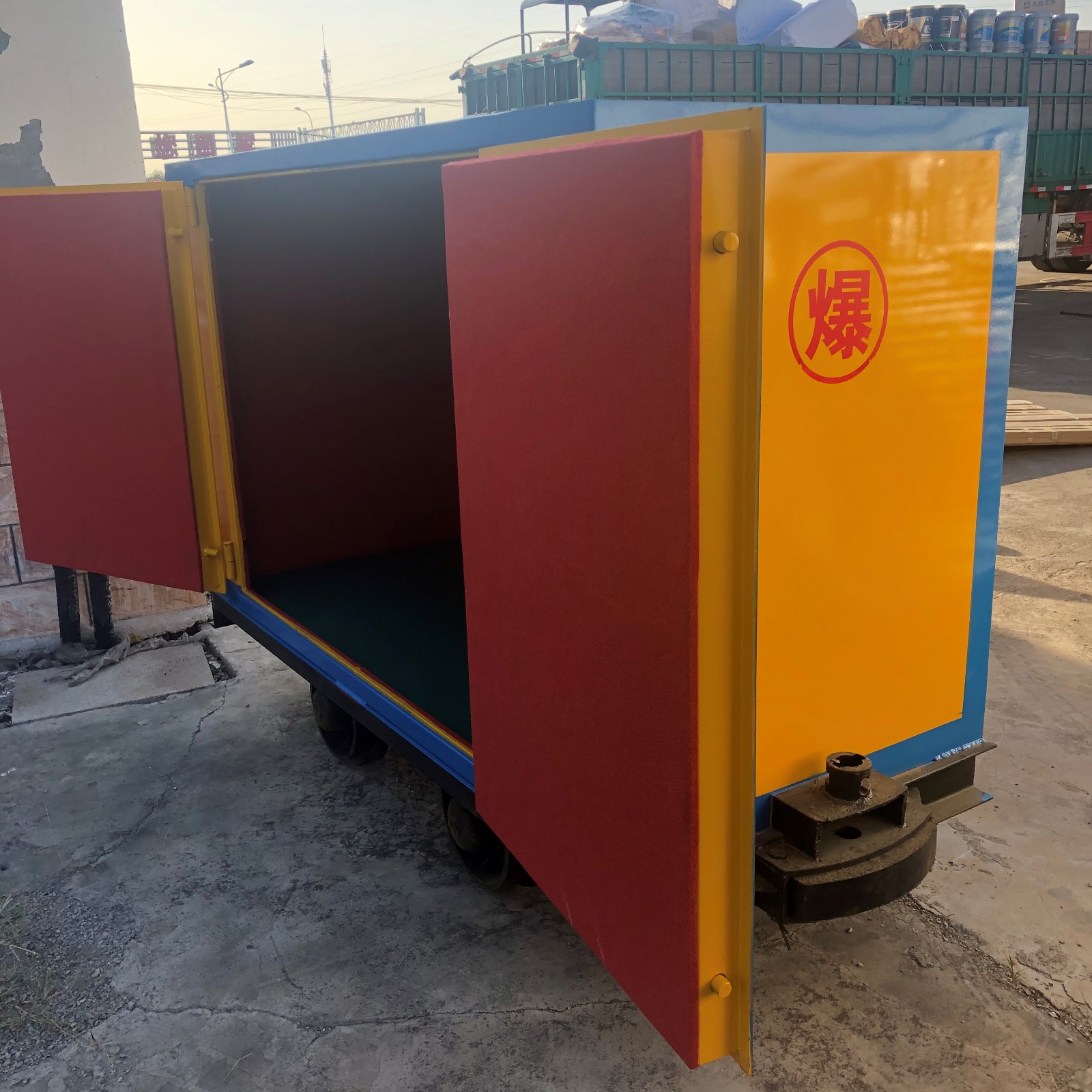 礦車式火工品運輸車采用高強度鋼材制作,結(jié)構(gòu)堅固穩(wěn)定,具備出色的抗沖擊和抗壓性能,在井下礦車運輸過程中能夠有效保護火工品的安全,鋼板厚度為6mm-8mm,柜體穩(wěn)固耐用,不易變形。