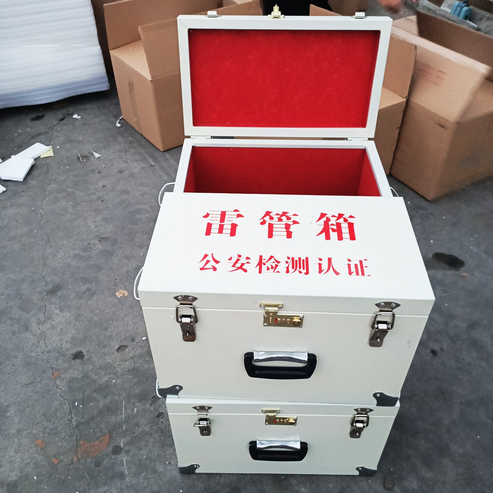 便攜炸藥箱/雷管箱適用于運(yùn)輸量較少適合人工背運(yùn),箱體可安裝肩背帶,用于斜跨或者單肩背負(fù),箱子上部也有安裝便攜提手,材質(zhì)為堅(jiān)固的防爆鋼板材質(zhì),板材厚度約為1mm。內(nèi)部做防靜電處理,為一層絕緣模板和一層防靜電氈子,也起到一定的防震作用,箱體四角安不銹鋼包角,使箱體更堅(jiān)固耐用,在復(fù)雜的環(huán)境下磕碰也不易造成變形。