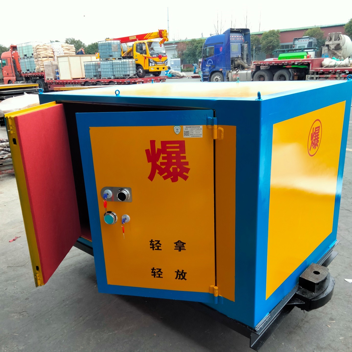 車載式炸藥運(yùn)輸柜采用了高強(qiáng)度鋼板制作,可有效防護(hù)炸藥、雷管等爆破物品,并抵御外界的沖擊、振動和靜電等環(huán)境下早上的不良后果,車載式設(shè)計使得炸藥運(yùn)輸柜可以輕松安裝在施工車輛上,方便實(shí)用。
