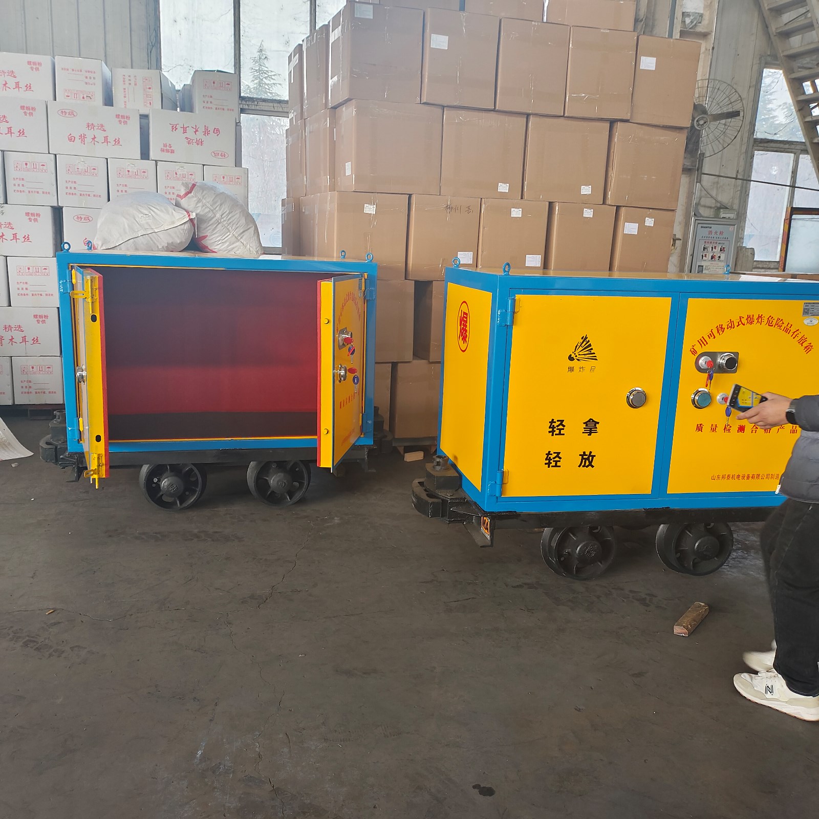 礦山爆破施工項(xiàng)目中,根據(jù)根據(jù)《爆破安全規(guī)程》等的規(guī)定,加強(qiáng)爆炸物品的領(lǐng)用、清退管理,結(jié)合井下爆破器材發(fā)放使用需要,進(jìn)一步完善消防、防爆、防靜電等安全防護(hù)措施。存放和運(yùn)輸過程中,由考核合格持證上崗的爆破人員押運(yùn),運(yùn)送途中不允許私自離開,從地面向井下運(yùn)輸爆破物品,會(huì)用到專用軌道運(yùn)輸車,是以礦車和爆炸危險(xiǎn)品存放柜相結(jié)合的形式,集存放和運(yùn)輸為一體,具有防爆,防靜電,耐壓,防震防盜的特點(diǎn)。