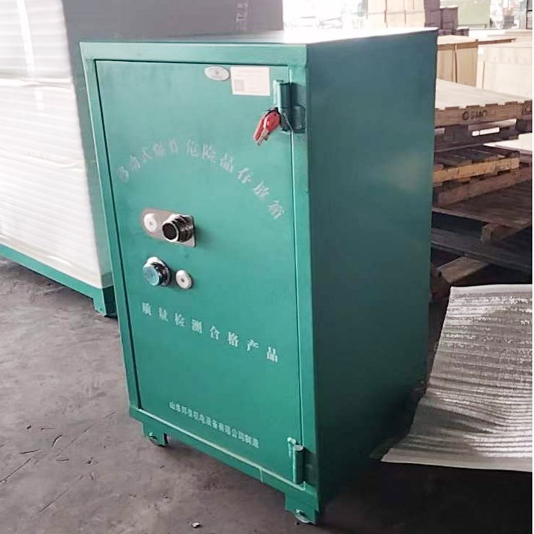 民爆物品專用存放柜體,是一款可移動式的儲存柜體,四角安裝走行輪,可在平地上推行,柜體采用硬質(zhì)鋼結構焊接而成,門板厚度要求不低于6mm,內(nèi)部材質(zhì)做絕緣處理,有一層10mm厚絕緣模板和抗震防靜電阻燃氈墊,有效防止產(chǎn)生靜電火花帶來的危險反應。