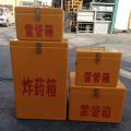 特別是針對開采、化工等危險行業(yè),玻璃鋼爆破安全防護(hù)箱使用效果更加明顯。箱體表面光潔,顏色鮮艷,使用明黃色涂漆,開合方式為上開蓋設(shè)計,上蓋和箱體使用銅質(zhì)折頁和鎖具連接,美觀耐用。其突出的防靜電特性十分適合煤礦企業(yè)使用,規(guī)格型號齊全,適用于存放不同容量的危險物品。存放炸藥和雷管的箱體,有幾種常用的規(guī)格,有300*200*200mm,400*300*300mm,390*260*610mm,800*500*500mm等,并具有相關(guān)檢測機(jī)構(gòu)出具的檢驗合格報告,有公安檢測報告和煤科院的檢測報告,可放心購買。