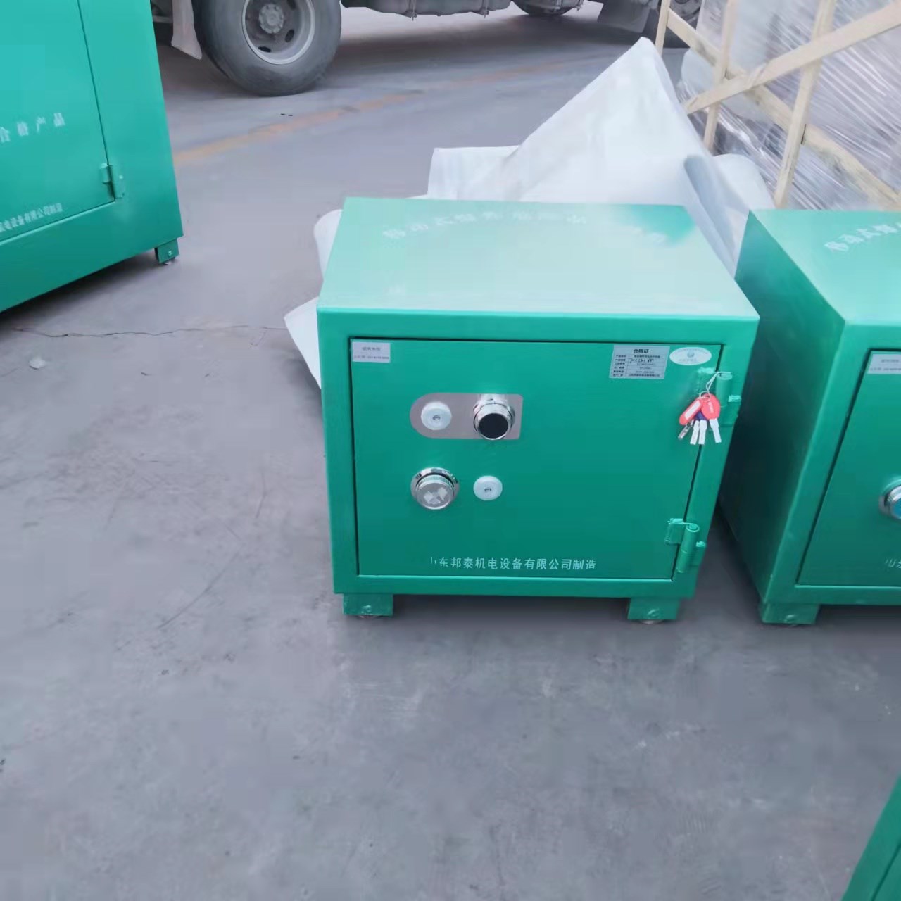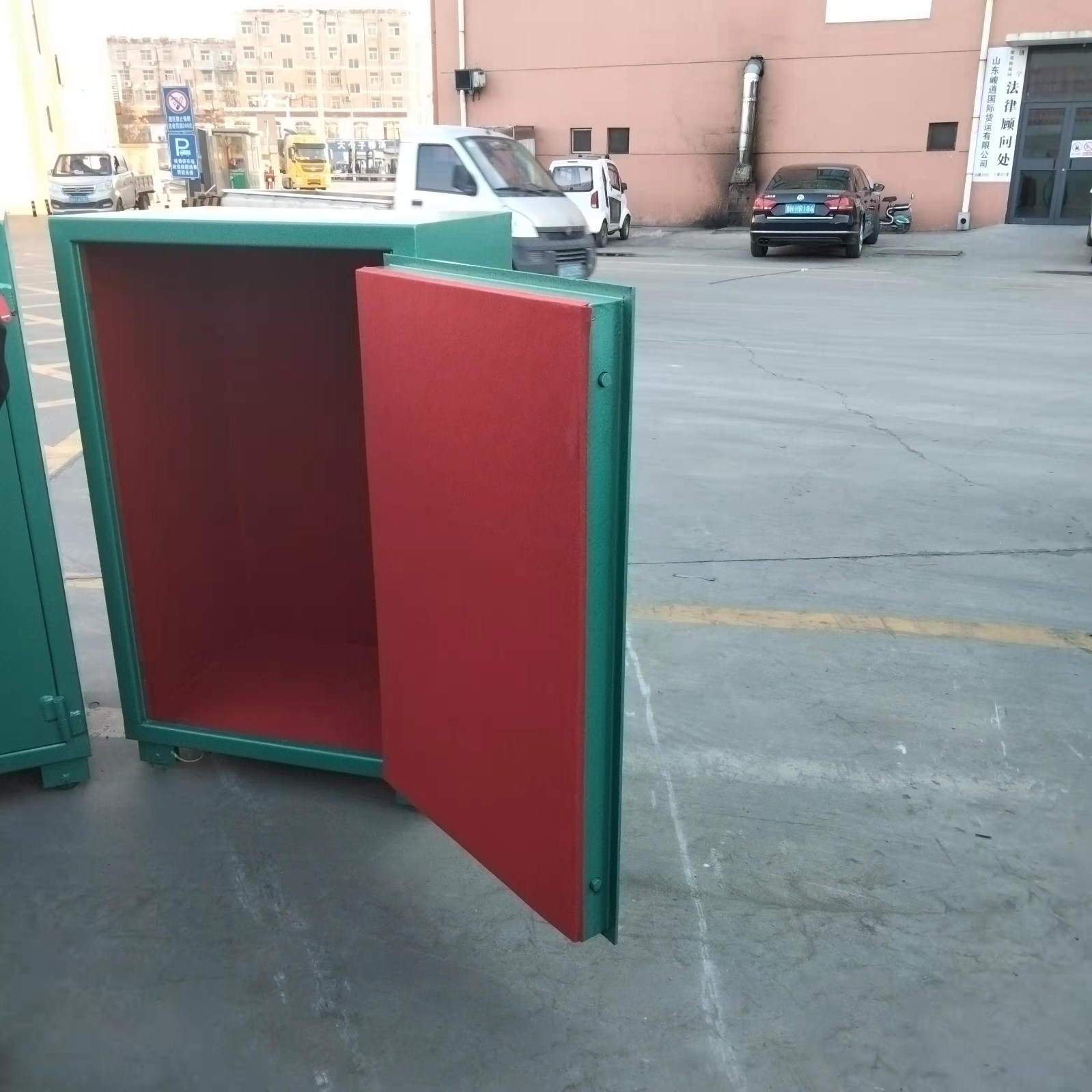 柜體外層采用加厚鋼板制做成型,機械鎖和密碼鎖雙重防護,內(nèi)部是木板和抗震防靜電的氈墊,具有很好的防護功能,規(guī)格多樣,根據(jù)存放量多少,存放炸藥一般從4箱到20箱不等,自助設(shè)計,結(jié)構(gòu)合理,充分利用空間,也可根據(jù)需求特殊定制。
